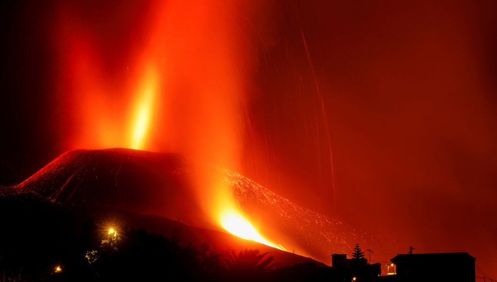 La llegada de la lava del volcán de la isla de la Palma al mar está formando una espesa nube ...